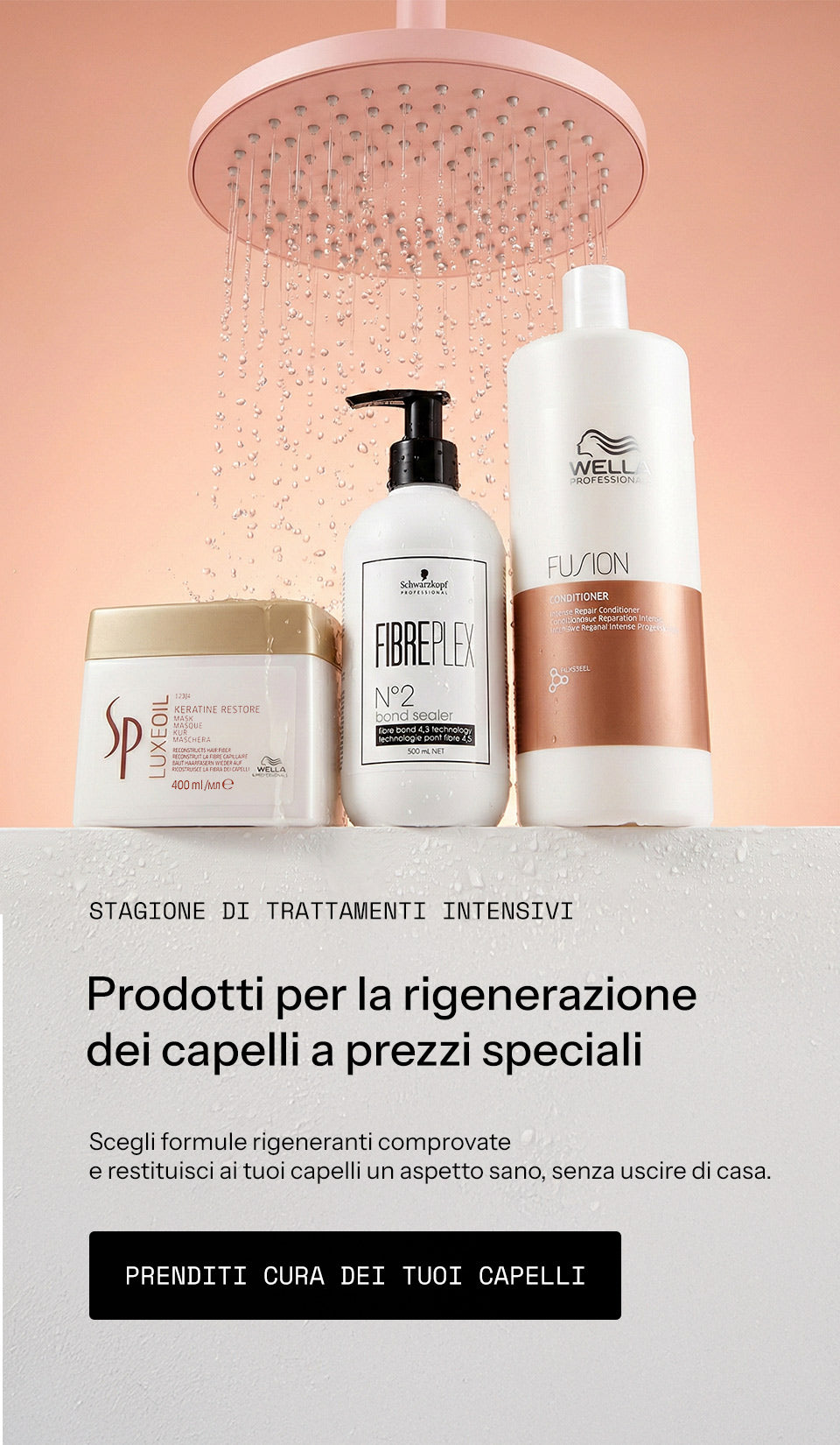 I capelli sono esposti ogni giorno a fattori esterni dannosi. Il vento, il gelo o l'eccessiva esposizione al sole possono indebolire le ciocche e, di conseguenza, aumentare la caduta, la fragilità e la secchezza dei capelli. Una cura adeguata è alla base di capelli sani e lucenti, motivo per cui la nostra offerta mette a disposizione solo prodotti professionali cosmetici per la cura dei capelli – shampoo, balsamo, maschere, oli, e molti altri. Sappiamo quanto sia importante fornire ai capelli una cura completa e i più elevati standard di cura, motivo per cui offriamo set di prodotti, in cui troverai combinazioni base, come shampoo e balsamo, o set più completi con maschera, olio o siero. Grazie a prodotti accuratamente selezionati, i tuoi capelli saranno adeguatamente rigenerati e riacquisteranno il loro aspetto sano.