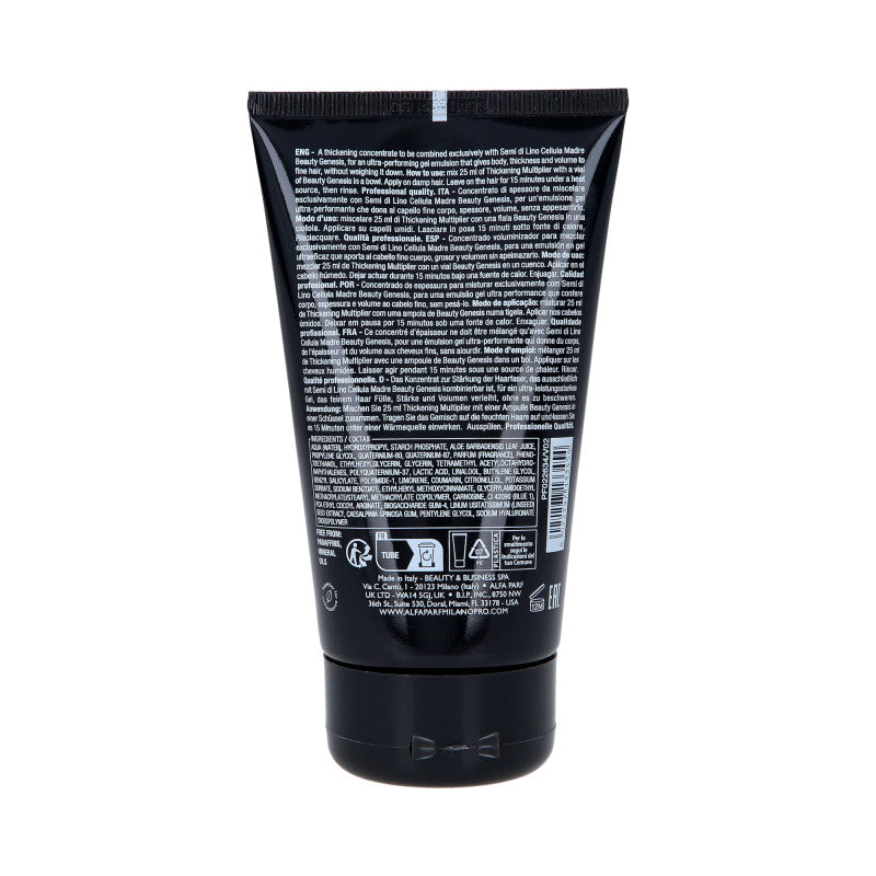 Innowacyjny produkt przeznaczony do włosów cienkich, które potrzebują dodatkowej objętości. Unikalna formuła odżywia, zagęszcza włosy bez efektu obciążenia, sprawiając, że wyglądają zdrowo i są pełne życia. Skutecznie unosi włosy od nasady, nadaje efekt pełnych oraz bujnych włosów. Multiplikator jest stworzony do połączenia z ampułkami Semi Di Lino Cellula Madre Beauty Genesis. Uelastycznia i niezwykle wygładza włosy, nadaje niesamowity blask, a lekka, żelowa konsystencja otula przyjemnym zapachem. Po zastosowaniu preparatu włosy zyskują na objętości, gęstości i uniesieniu.