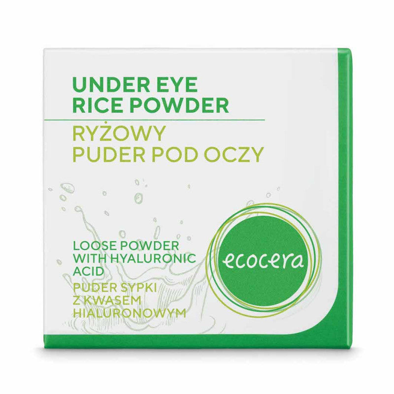 Ryżowy Sypki Puder Pod Oczy Rozświetlający z kwasem hialuronowym ECOCERA zadba o odpowiedni poziom nawilżenia delikatnej skóry wokół oczu i nada jej zdrowy, brzoskwiniowy odcień. Produkt posiada innowacyjny, naturalny skład oparty na skrobi ryżowej oraz kukurydzianej. Kwas hialuronowy zadba o odpowiednie nawilżenie i wygładzi skórę pod oczami. Subtelna złota drobinka pochodzenia mineralnego (mika) oraz krzemionka odbijają światło, optycznie wygładzając skórę i zmniejszając widoczność zmarszczek.