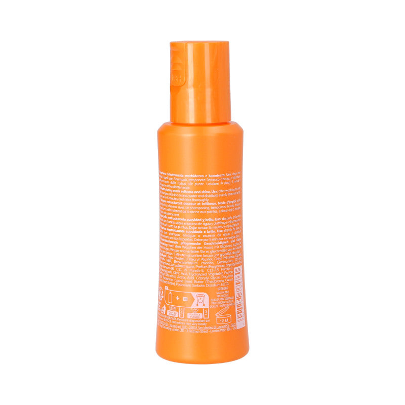 Maska odżywcza i restrukturyzująca Fanola Wonder to idealna maska pielęgnacyjna do włosów suchych, kręconych i zniszczonych. Maska intensywnie odżywia włosy od nasady aż po końce. Zapewnia odżywienie i nawilżenie włosów. Włosy staną się cudownie miękkie i nabierają pięknego naturalnego połysku dzięki różnym pielęgnującym składnikom, takim jak masło kakaowe. Nawilżające i odżywcze działanie sprawia, że włosy stają się jedwabiście miękkie, lśniące i łatwe do rozczesania. Mimo intensywnego nawilżenia, maska nie obciąża włosów. Maska ma miękką, kremową konsystencję, dzięki czemu łatwo rozprowadza się ją na włosach. Posiada wegańską formułę i nie jest testowana na zwierzętach.