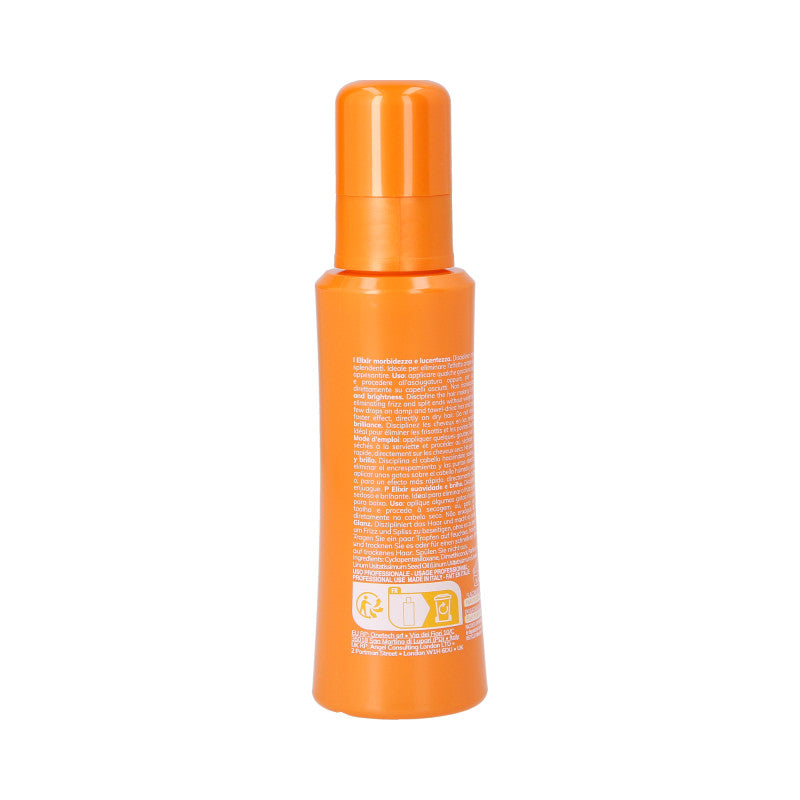 Sposób użycia: Eliksir można stosować w dowolny sposób. Na włosy wilgotne przed stylizacją. Na włosy suche, celem wykończenia fryzury i uszczelnienia łusek. W codziennym stosowaniu, aby zapobiec puszeniu. Pamiętaj, aby odmierzyć kilka kropel eliksiru, rozetrzeć na dłoniach po czym nałóż na włosy.