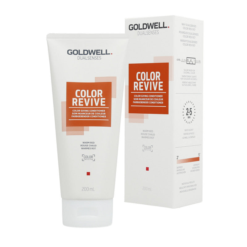 Odżywka koloryzująca Goldwell Color Revive jest przeznaczona do pielęgnacji włosów farbowanych. Pozwala utrzymać kolor między zabiegami koloryzacji. Odżywka Color Revive jest dostępna w 8 kolorach odpowiadającym najpopularniejszym odcieniom blondu, brązu i czerwieni wśród farb Topchic i Colorance.