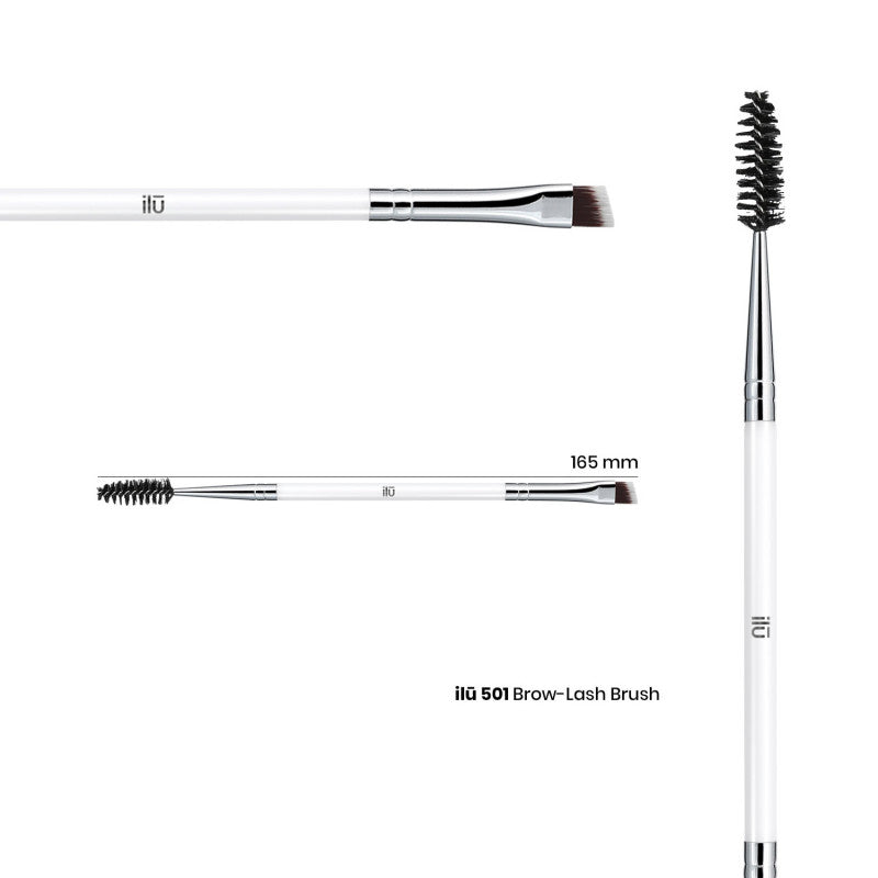 Piękne, równe brwi to podstawa każdego makijażu. Żeby osiągnąć zadowalający efekt należy zaopatrzyć się w najlepszy pędzel! Dwustronny model 501 pomoże skorygować kształt brwi i dorysować pojedyncze włoski za pomocą skośnego pędzla i wyczesać nadmiar kosmetyków za pomocą spiralki.
