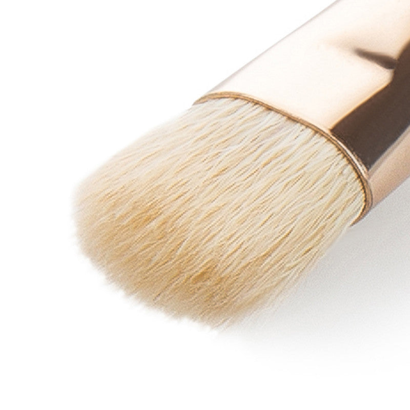 Średni pędzel do blendowania cieni do powiek. Pozwala na bardzo precyzyjne blendowanie cieni w załamaniu powieki oraz w kącikach oczu. Wykonany z najwyższej jakości białego włosia kozy, którego właściwości umożliwiają nawet długotrwałe rozcieranie cieni bez podrażniania delikatnej skóry powiek. Miedziana skuwka i drewniana rączka są odporne na rdzę oraz na zarysowania i odgniecenia. Pędzle doskonale leżą w dłoni, są łatwe do utrzymania w czystości i nie gubią włosia.