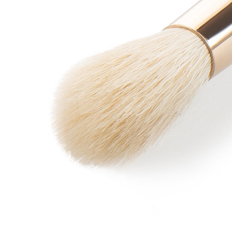 Duży pędzel do blendowania. Lekko zaostrzony kształt pędzla umożliwia precyzyjne zacieranie granic między odcieniami. Najwyższej jakości naturalne włosie kozy nie podrażnia delikatnej skóry powiek nawet w czasie długotrwałego rozcierania cieni.Pędzel został wykonany ze szlachetnych materiałów, jak drewno, miedź i wysokogatunkowe włosie. Drewniana rączka i miedziana skuwka są odporne na odgniecenia, zarysowania i rdzę.