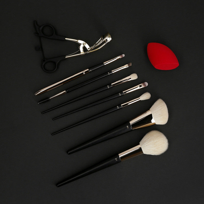 Zestaw zawiera 9 wysokojakościowych akcesoriów Kashōki niezbędnych do wykonania do makijażu. Są to m.in. : pędzel do pudru, pędzel do różu, pędzel do korektora, pędzel do aplikacji cieni, pędzel do blendowania oraz gąbka i zalotka.