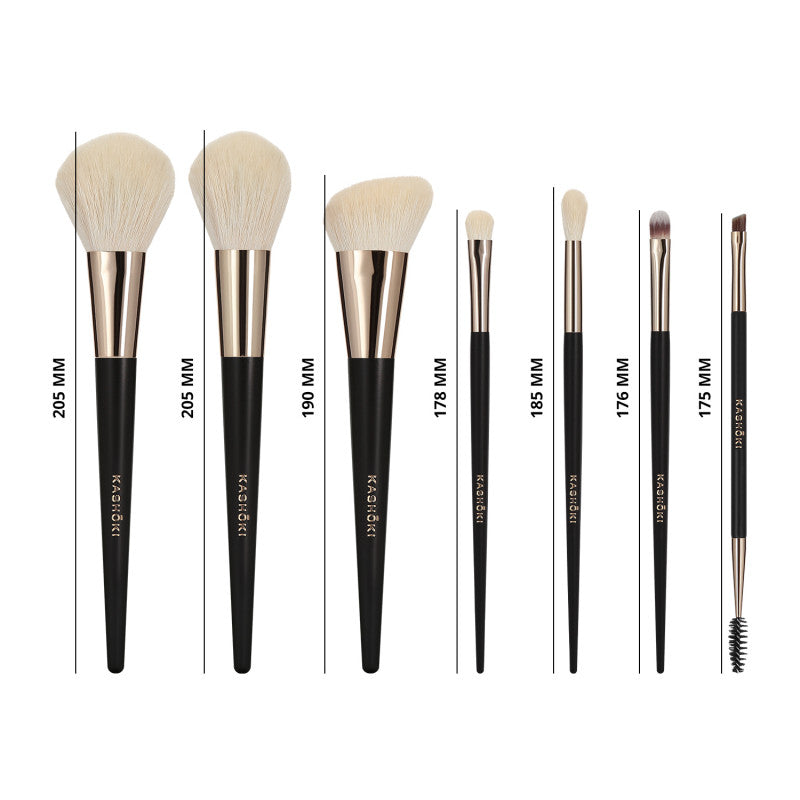Zestaw pędzli do makijażu Kashōki to połączenie wyszukanego designu i najwyższej jakości. Zawiera 7 ręcznie wykonanych pędzi do pudru, do konturowania i do makijażu oczu. Wszystkie posiadają rączki z drewna schima, trwałe miedziane skuwki i doskonale dobrane włosie. Doskonałym dopełnieniem kolekcji pędzli jest elegancka czarna tuba.
