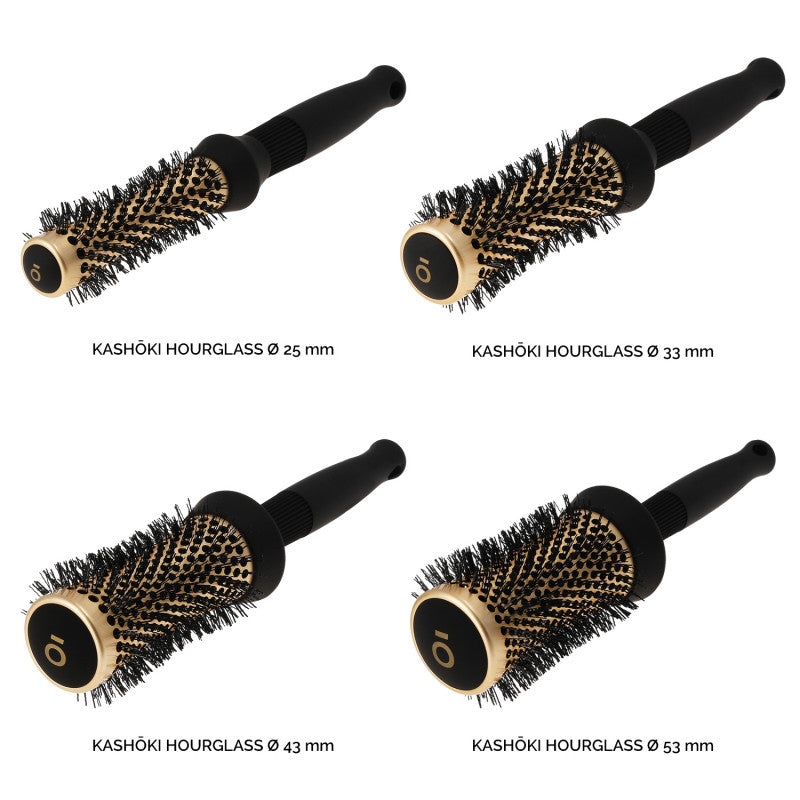 - Kashōki Hourglass Styling Brush Ø 43 mm - - ceramiczna szczotka w kształcie klepsydry z jonizacją do modelowania półdługich włosów.