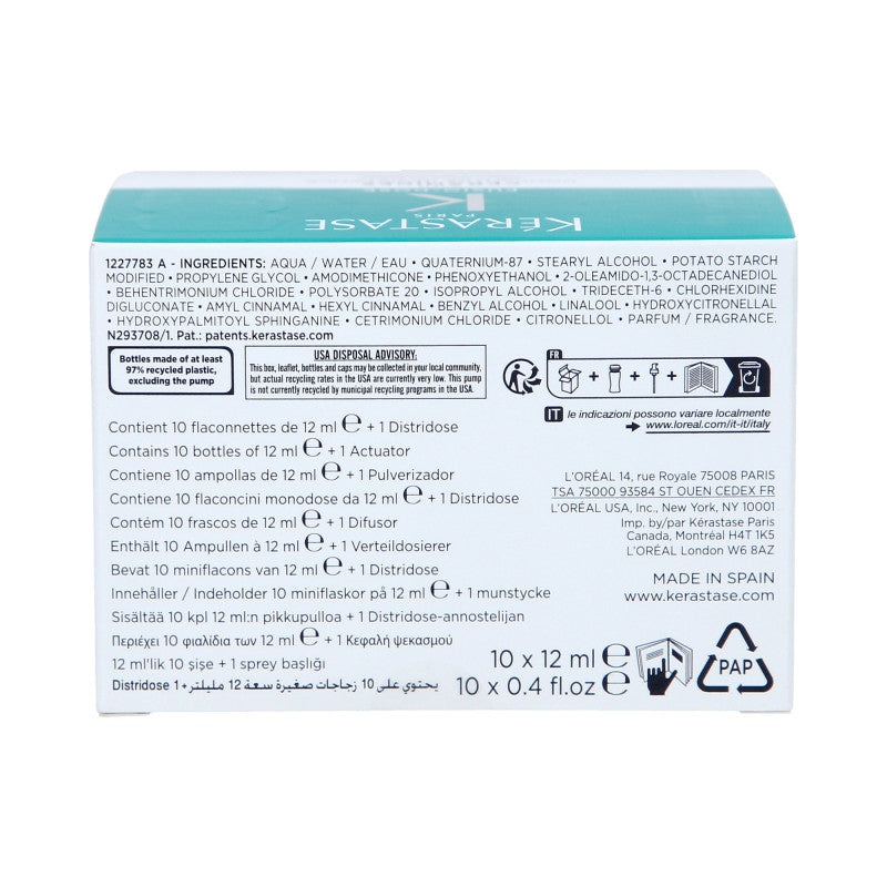 Ampułka fabrycznie napełniona tylko do połowy opakowania. Ma to na celu umożliwienie wprowadzenia do niej specjalnego boostera marki Kerastase.