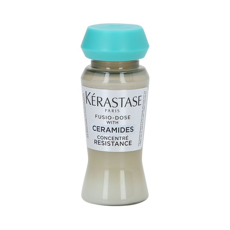 Kérastase Fusio-Dose Concentré Résistance Ceramides to profesjonalne ampułki opracowane specjalnie dla włosów zniszczonych, osłabionych i wymagających intensywnej regeneracji. Dzięki zawartości ceramidów, produkt działa na strukturę włosa, wzmacniając go od wewnątrz i odbudowując uszkodzenia.