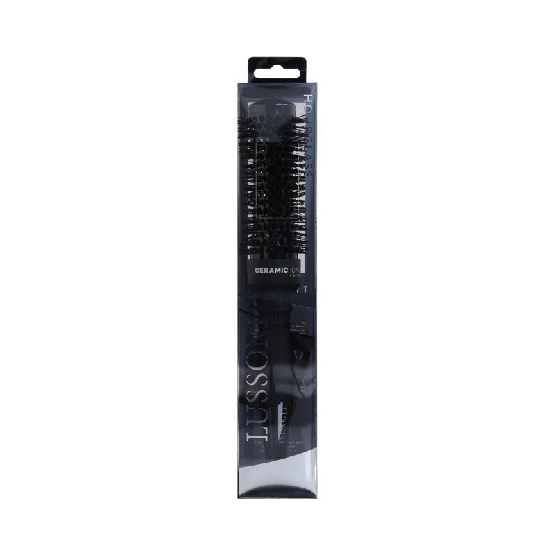 Profesjonalna szczotka do modelowania włosów Lussoni Hourglass została stworzona we współpracy ze stylistami włosów, aby modelowanie stało się efektywne i szybkie. Szczotka wyposażona została w szereg przydatnych właściwości takich jak: jonizacja, działanie antystatyczne, karbowane włosie, ceramiczna powłoka oraz specjalnie wyprofilowany kształt klepsydry.