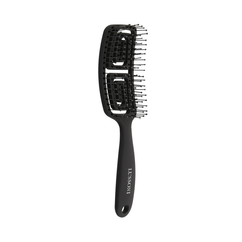 Szczotka do czesania Lussoni Labyrinth została zaprojektowana, aby skutecznie rozczesywać włosy i jednocześnie delikatnie masować głowę. Specjalnie opracowana budowa szczotki oraz elastyczność tworzywa, z którego została wykonana sprawiają, że doskonale dopasowuje się ona do kształtu głowy. Syntetyczne ząbki bezboleśnie rozczesują włosy nie niszcząc ich.