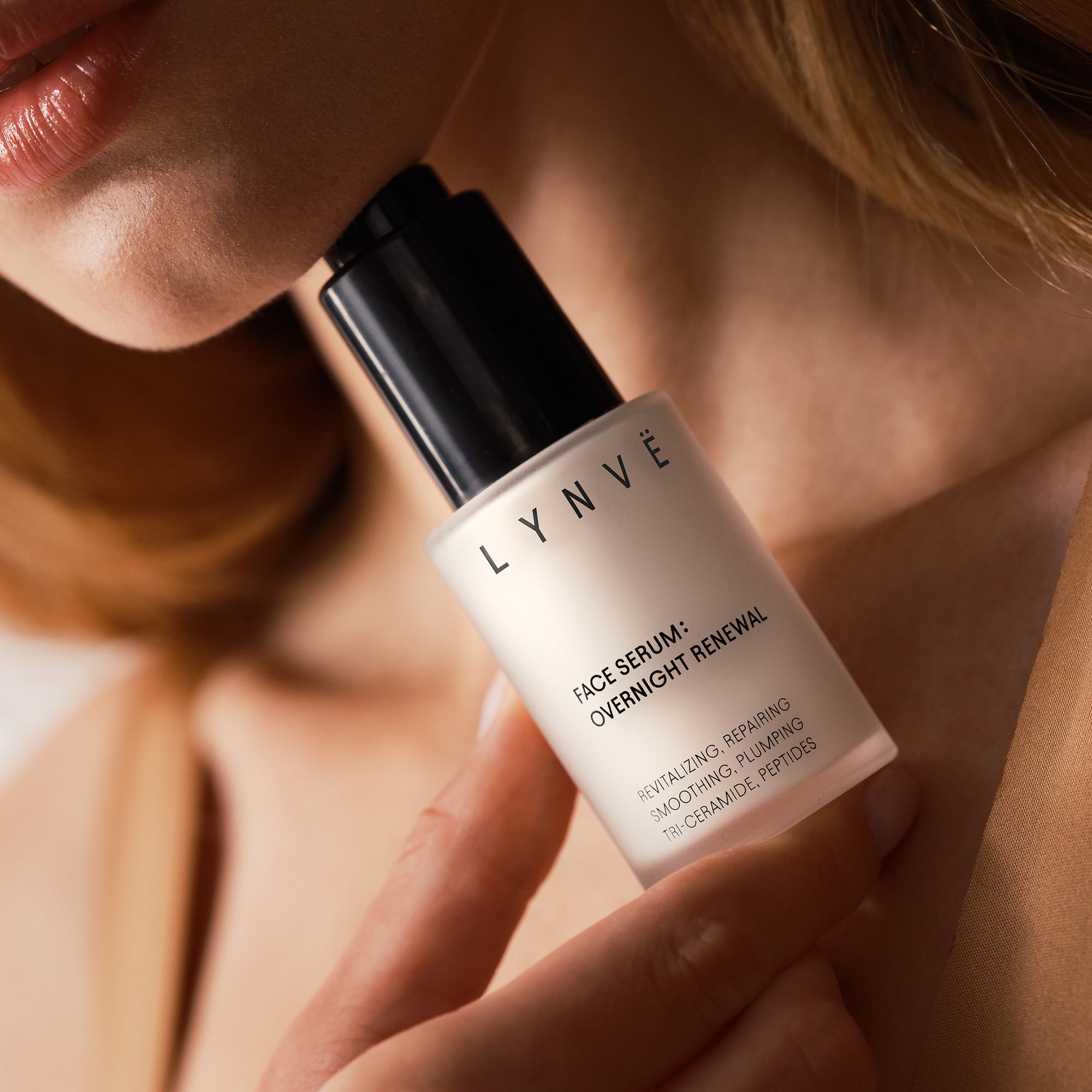 Skoncentrowane serum na noc Overnight Renewal LYNVЁ otula twarz warstwą regenerujących ceramidów, peptydów i antyoksydantów. Podczas snu składniki aktywne wspierają odbudowę bariery hydrolipidowej, stymulują syntezę kolagenu oraz poprawiają strukturę i elastyczność skóry. Serum wyrównuje koloryt, redukuje widoczność porów i drobnych linii.