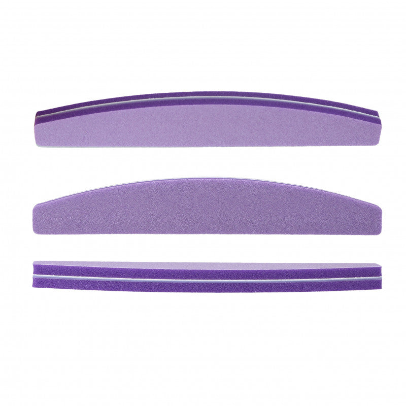 Fioletowa dwustronna polerka do paznokci o kształcie łódki i ziarnistości 100/180. Doskonała do pielęgnacji paznokci oraz do wygładzania ich powierzchni. Strona drobnoziarnista pozwala wygładzić i wypolerować płytkę, natomiast średnioziarnista strona jest doskonała do nadawania kształtu paznokciom żelowym i akrylowym. Dzięki zastosowaniu elastycznego materiału oraz ergonomicznemu kształtowi pozwala dotrzeć w trudno dostępne miejsca. To specjalnie wyprofilowany pilnik łączący dwa kształty – prosty, pozwalający na wymodelowanie płytki paznokcia, oraz okrągły, idealny do opracowania wału paznokciowego. Polerka do paznokci jest wykonana z wysokiej jakości materiału, który można myć i dezynfekować.