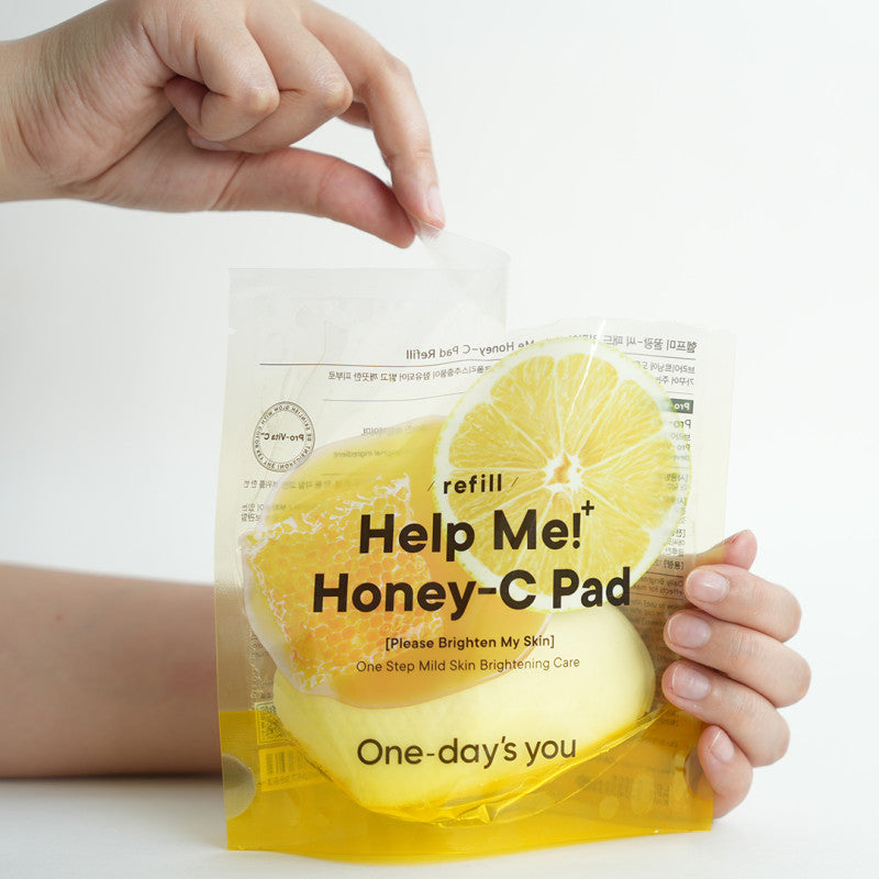 ONE-DAY'S YOU Help Me Honey-C Pad Refill to wkład uzupełniający do rozjaśniających i nawilżających płatków tonizujących, które pomagają ożywić matową i zmęczoną skórę, wyrównać jej koloryt i dostarczyć intensywne nawilżenie. Każdy płatek jest nasączony esencją bogatą w witaminę C, która wspomaga redukcję przebarwień i poprawia elastyczność skóry.