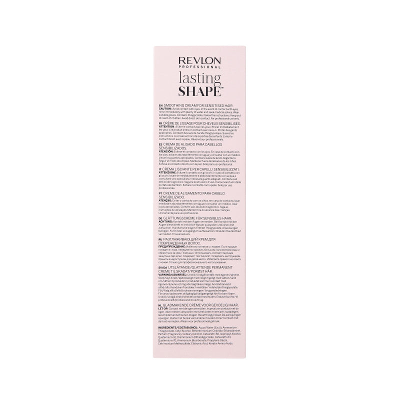 Revlon Professional Lasting Shape Smooth to zaawansowany system wygładzający, stworzony z myślą o profesjonalnym prostowaniu włosów. Dzięki innowacyjnej formule z Ammonium Thioglycolate i Keratin Amino Acids, produkt skutecznie wygładza włosy, redukuje ich objętość i nadaje im jedwabistą gładkość, zachowując przy tym ich naturalną elastyczność. Produkt przeznaczony do użytku w salonach fryzjerskich. Idealny do włosów wrażliwych, cienkich i uwrażliwionych.