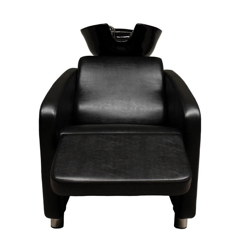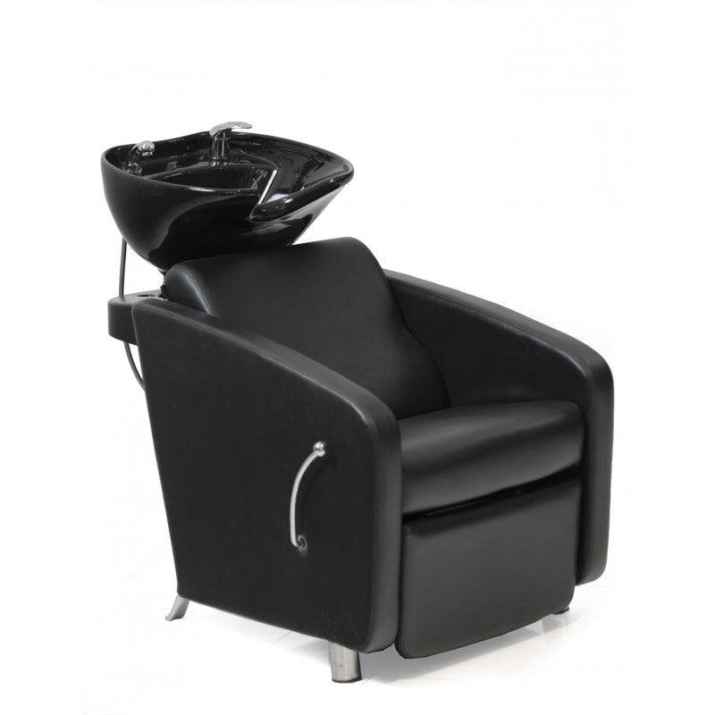 Luxor to funkcjonalna umywalka z podnóżkiem, odpowiednia dla osób o każdym wzroście. Oparcie umywalki jest ukształtowane anatomicznie, dzięki czemu klient uzyskuje szczególnie dobrą postawę. Mechanicznie podnoszony podnóżek dopełnia przyjemnego momentu odprężenia. Uchylna ceramiczna umywalka i stylowe chromowane nogi usprawniają pracę fryzjera. Tapicerka gładka czarna arelan jest odporna na zabrudzenia. Umywalka dostępna jest z tradycyjną baterią i systemem prysznicowym lub anti-drop. Części wodne posiadają certyfikat UE.