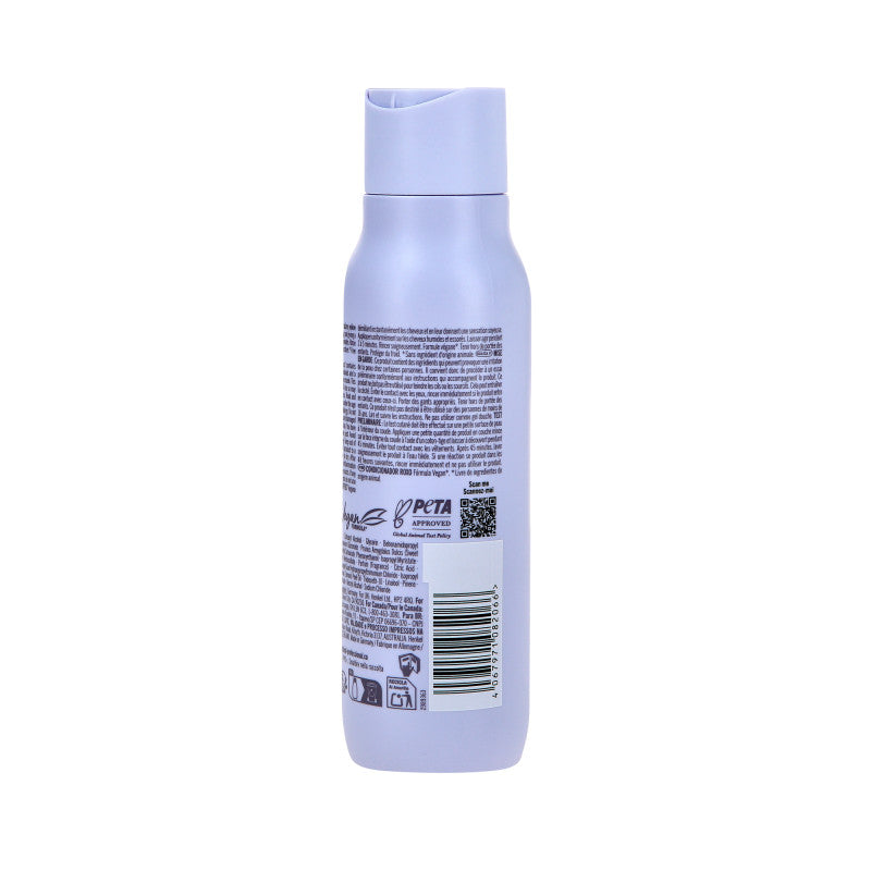Formuła zawiera fioletowe pigmenty, które skutecznie eliminują niepożądane żółte tony, przywracając chłodny, czysty odcień blond lub siwych włosów. Dodatkowo odżywka intensywnie nawilża i wygładza, nie obciążając włosów, pozostawiając je miękkie, lśniące i pełne życia.