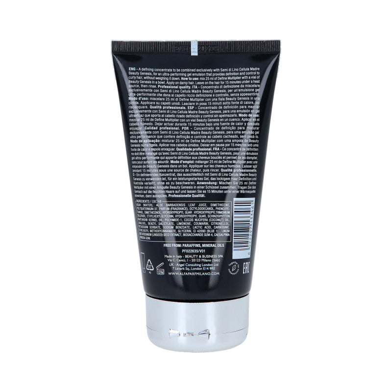Modalità d'uso: Miscelare 25 ml di prodotto con la fiala Cellula Madre Beauty Genesis. Applicare la miscela con un pennello sui capelli umidi, quindi distribuire uniformemente su tutta la lunghezza. Lasciare in posa per 15 minuti utilizzando una fonte di calore, quindi risciacquare abbondantemente con acqua tiepida.