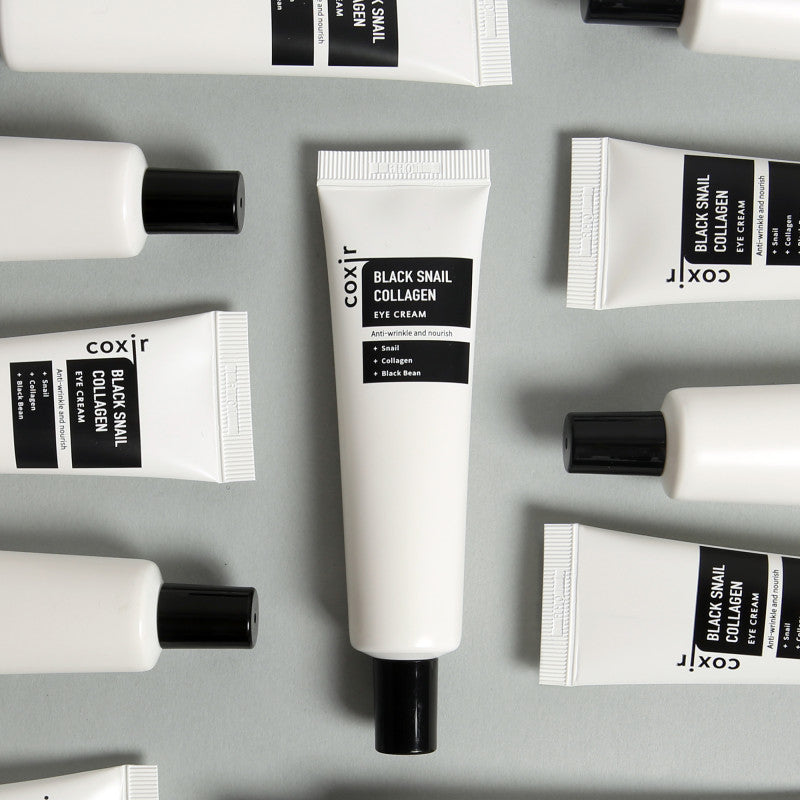 COXIR Black Snail Collagen Eye Cream è una crema per gli occhi ricca di nutrienti che riduce efficacemente i segni dell'invecchiamento, idrata e rigenera la delicata pelle intorno agli occhi. La formula a base di bava di lumaca, collagene ed estratti di superfood neri (fagioli neri, riso nero, sesamo nero) aiuta a levigare le rughe, migliora l'elasticità della pelle e fornisce idratazione e protezione di lunga durata contro i fattori esterni.