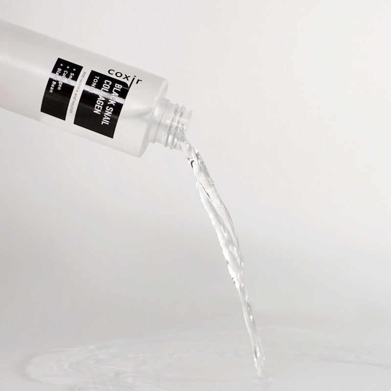 COXIR Black Snail Collagen Toner è un tonico idratante nutriente che supporta la rigenerazione della pelle, rafforza la sua barriera protettiva e aiuta a levigare le linee sottili. La formula a base di bava di lumaca, collagene ed estratti di superfood neri (riso nero, fagioli neri, sesamo nero) idrata, nutre e migliora efficacemente l'elasticità della pelle, donandole un aspetto sano e radioso.