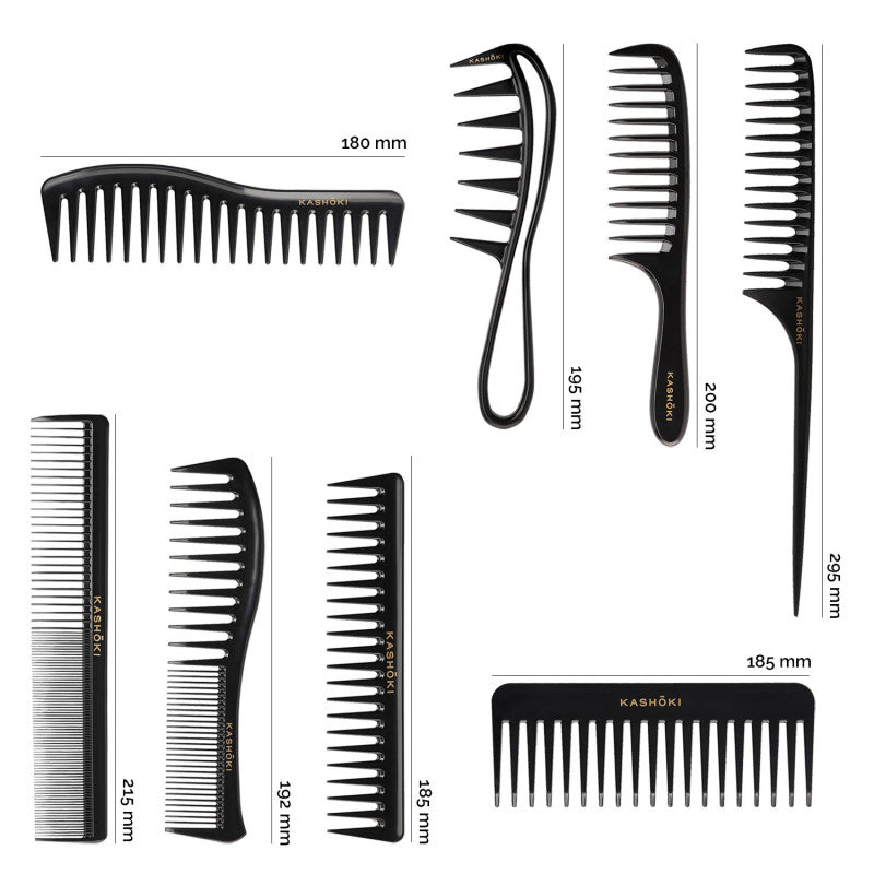 Il set è composto da 8 pettini unici per pettinare, acconciare e tagliare i capelli. Sono stati tutti creati con attenzione ai minimi dettagli, con materiali di alta qualità. Hanno forme insolite e colori senza tempo. Perfetti per pettinare anche i capelli molto spessi.