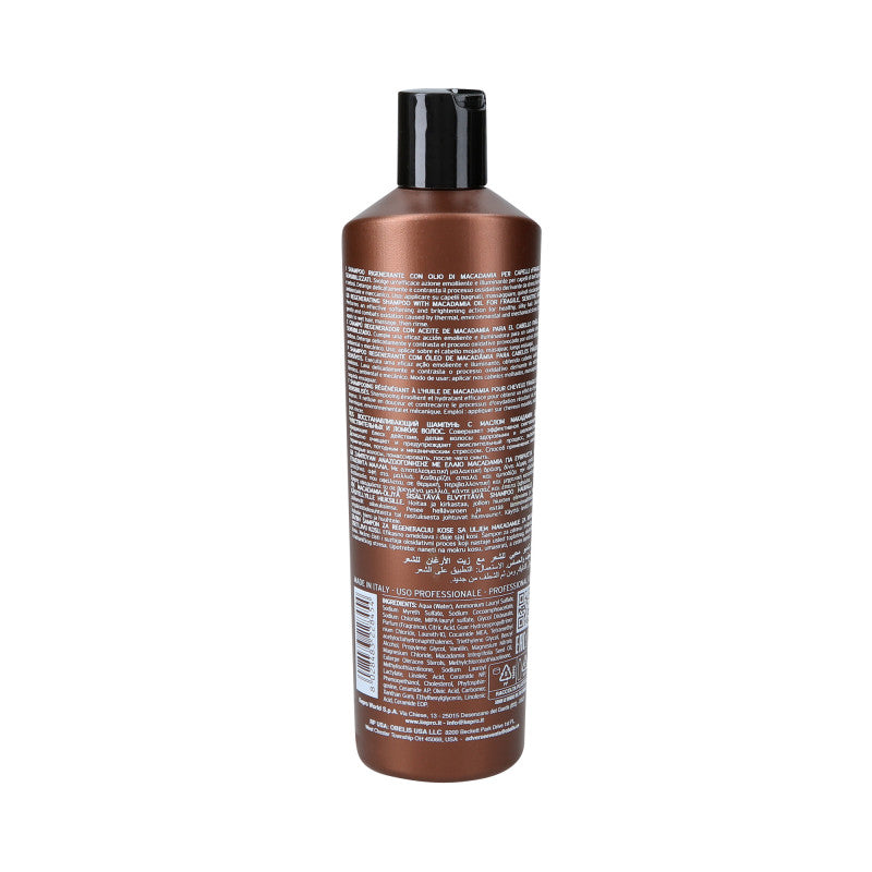 KAYPRO Macadamia è uno shampoo rigenerante studiato per capelli fini, fragili e indeboliti che necessitano di una riparazione intensa e di una cura delicata. La sua formula, arricchita con olio di macadamia, nutre e idrata in profondità i capelli durante il lavaggio, favorendone la rigenerazione della struttura e restituendone l'elasticità. Lo shampoo deterge delicatamente il cuoio capelluto e le ciocche da impurità e residui di styling, senza appesantire o seccare i capelli. L'uso regolare restituisce vitalità, sana lucentezza e morbidezza ai capelli, proteggendoli da rotture e indebolimento. Questo è il primo passo di un trattamento rigenerante completo per capelli che necessitano di un supporto intensivo.