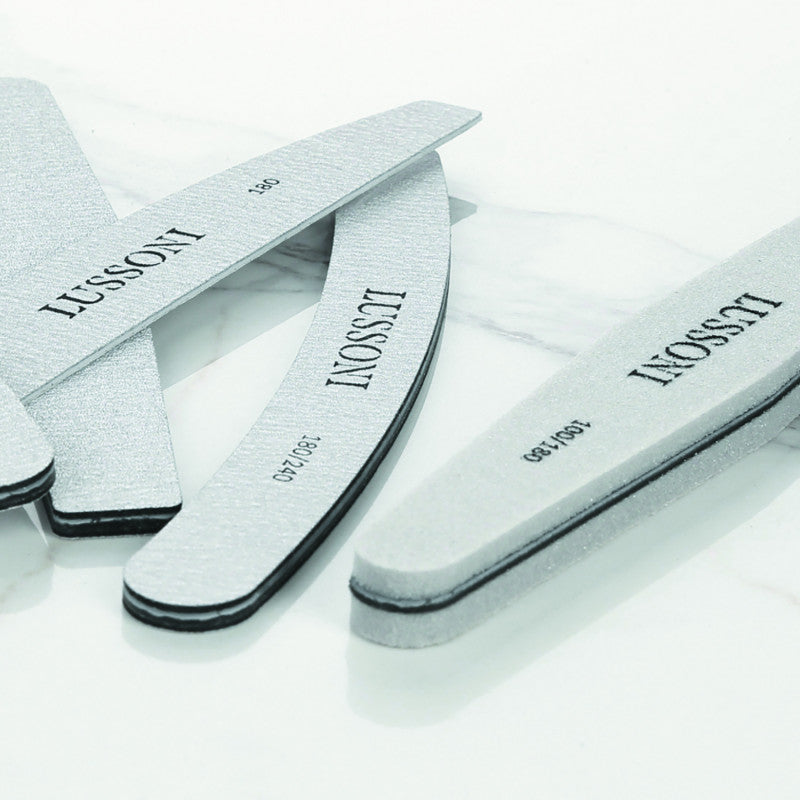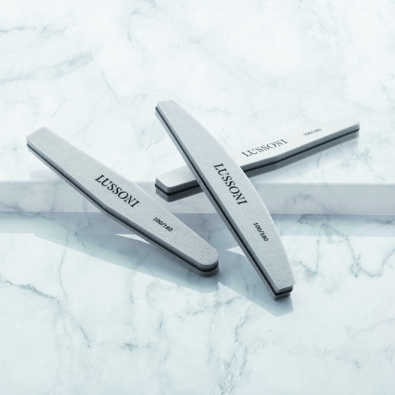 Per le unghie naturali e indurite è raccomandato il buffer Lussoni a due lati a grana 100/180. Grazie ai materiali resistenti, i prodotti Lussoni conservano le loro proprietà a lungo.