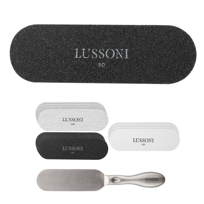 Lime adesive di carta per piedi grana 80 monouso. Vanno applicate sulla base in acciaio chirurgico Lussoni. Rendono più facile l'igiene durante la pedicure.