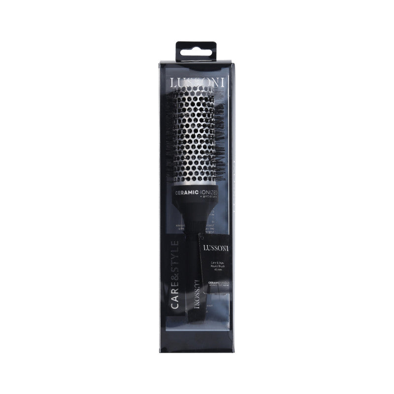 La spazzola per capelli professionale Lussoni Care&Style è stata progettata in collaborazione con parrucchieri professionisti per soddisfare perfettamente le loro esigenze. La spazzola grande per capelli è stata studiata in ogni dettaglio, come ad esempio la forma e il materiale del manico, il corpo e le setole sono ideati con cura e prodotti con materiali di alta qualità. Il risultato è una spazzola facile e veloce da maneggiare, adatta alle esigenze dei professionisti ma anche per chi vuole un risultato professionale a casa. Il suo rivestimento in ceramica non si surriscalda e la sua forma impedisce ustioni sulla pelle. L'impugnatura ergonomica si adatta perfettamente alla mano ed è ricoperta di un rivestimento antiscivolo. Le sue proprietà ionizzanti facilitano la pettinatura e chiudono le squame dei capelli in modo che i capelli diventano lucidi, morbidi e ben curati. Le sue proprietà antistatiche evitano l'effetto crespo. La spazzola lisciante Lussoni è leggera e questo facilita il lavoro del parrucchiere, la messa in piega è veloce. La spazzola Lussoni Care&Style da 43mm asciuga e modella delicatamente i capelli lunghi. La collezione Lussoni è ideale per uso professionale e domestico.