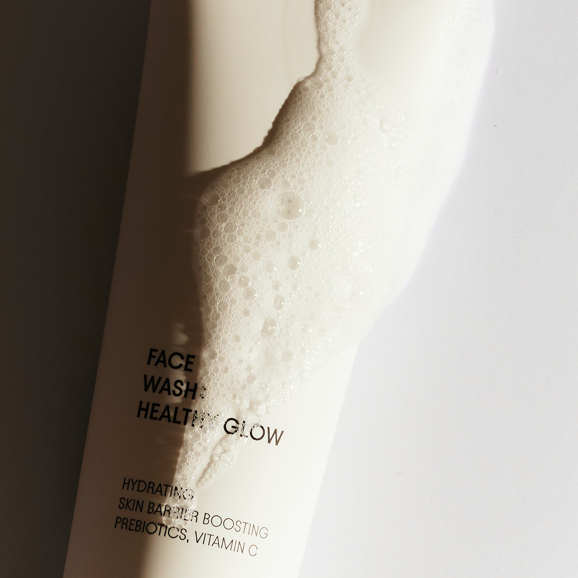 Healthy Glow LYNVЁ Gentle Face Wash rimuove a fondo le impurità, prendendosi cura della barriera idrolipidica della pelle per mantenere un'idratazione ottimale. La sua formula, arricchita con antiossidanti, prebiotici che supportano il microbioma e minerali che stimolano la respirazione cellulare, ripristina la freschezza della pelle e ne migliora le condizioni generali. Questo promette un incarnato pulito, idratato e radioso.