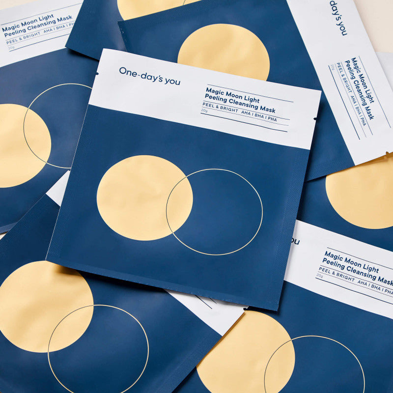 ONE-DAY'S YOU Magic Moon Light Peeling Cleansing Mask è un'innovativa maschera in tessuto che esfolia le cellule morte e deterge in profondità la pelle in soli 60 secondi. Combina l'azione di una schiuma detergente e di uno scrub, offrendo una cura completa in un solo gesto. Grazie al contenuto di AHA, BHA e PHA, rimuove efficacemente le cellule morte, libera i pori e riduce l'eccesso di sebo, lasciando l'incarnato liscio e fresco. La formula, arricchita con estratti vegetali naturali, lenisce ulteriormente la pelle e ne favorisce la rigenerazione. Caratteristiche del prodotto: