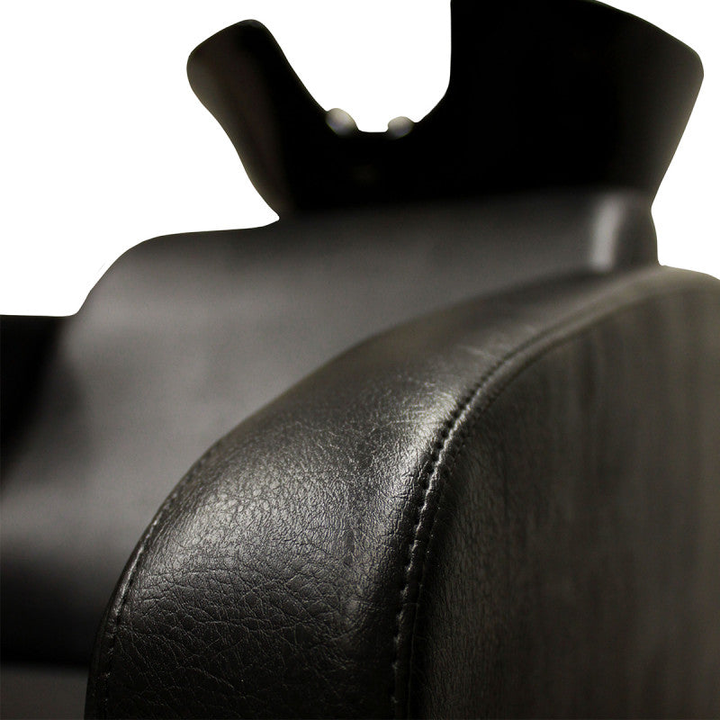 Luxor è un funzionale lavabo con poggiapiedi, adatto a persone di ogni statura. Lo schienale del lavabo è sagomato anatomicamente, in modo che il cliente ottenga una postura particolarmente buona. Il poggiapiedi rialzato meccanicamente completa il piacevole momento di relax. Il lavabo basculante in ceramica e le eleganti gambe cromate facilitano il lavoro del parrucchiere. Il rivestimento in arelan nero liscio è resistente allo sporco. Il lavabo è disponibile con rubinetto tradizionale e sistema doccia antigoccia. Le parti dell'acqua sono certificate dall'UE.