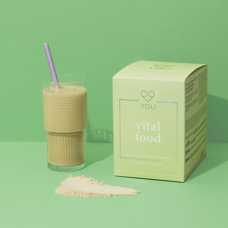 YOU VITAL FOOD NUTRI BLEND VEGE PROTEIN FORMULA è più di un semplice integratore proteico vegano senza zuccheri aggiunti. Contiene proteine (proteine isolate di pisello) che supportano lo sviluppo e il mantenimento della massa muscolare, farina d'avena per un'energia bilanciata, olio di cocco con proprietà nutritive, estratto di frutto di acerola e ingredienti brevettati come: Probiostress®zen (riduzione dello stress e miglioramento della qualità del sonno), Shagandha® (riduzione dei livelli di stress), Inavea™ (proprietà prebiotiche e elevata tolleranza digestiva), Diphorm® (ricca fonte di acidi omega-3).